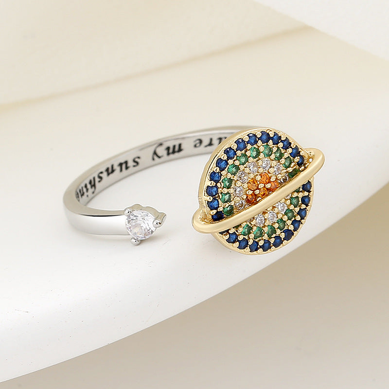 Minority Simple Anti-pressure Rotating Color Zirconium Planet Ring
